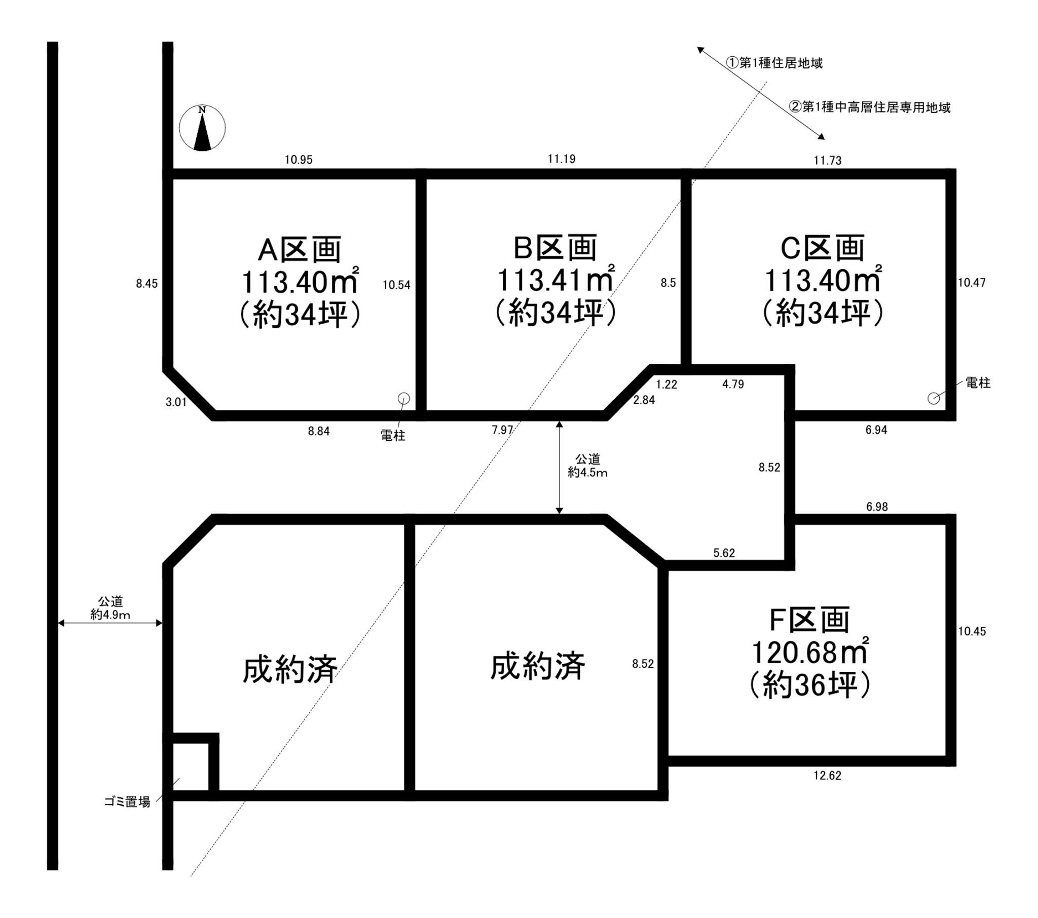 ■開発道路私道持分125m×2/15有り A区画・C区画に新設電柱が設置されます D区画隣接地にゴミ置場が新設されます(持分1/6有り)