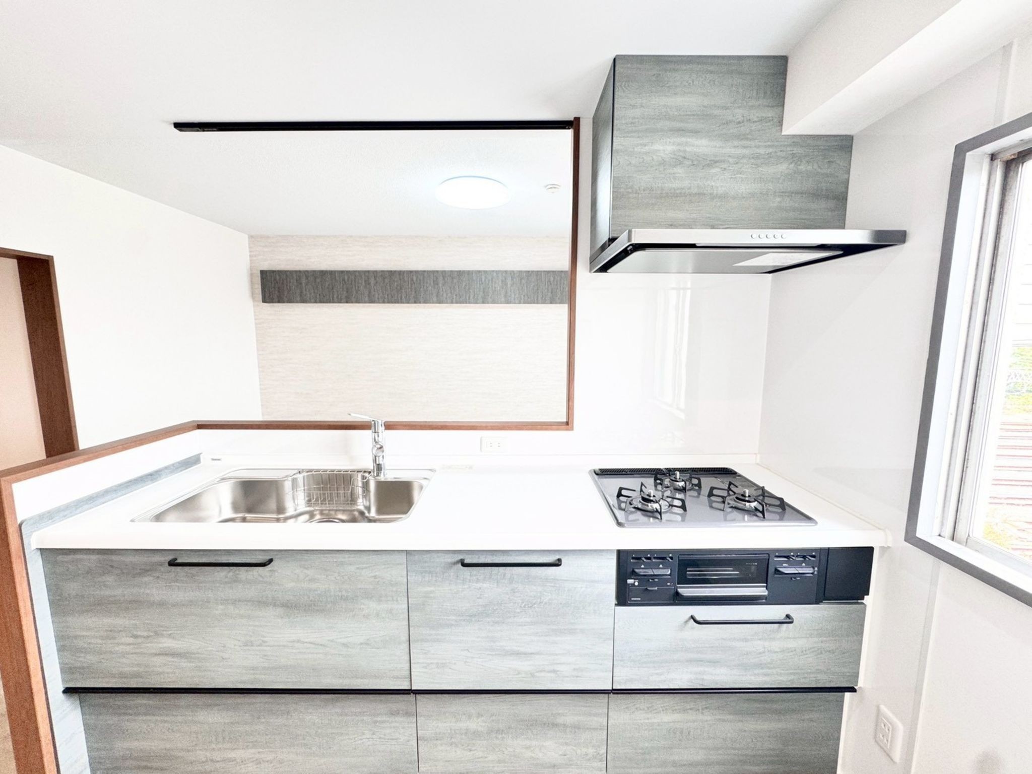 キッチン、洗面台、浴室、照明器具、天井造作、建具、フローリング、クロス
