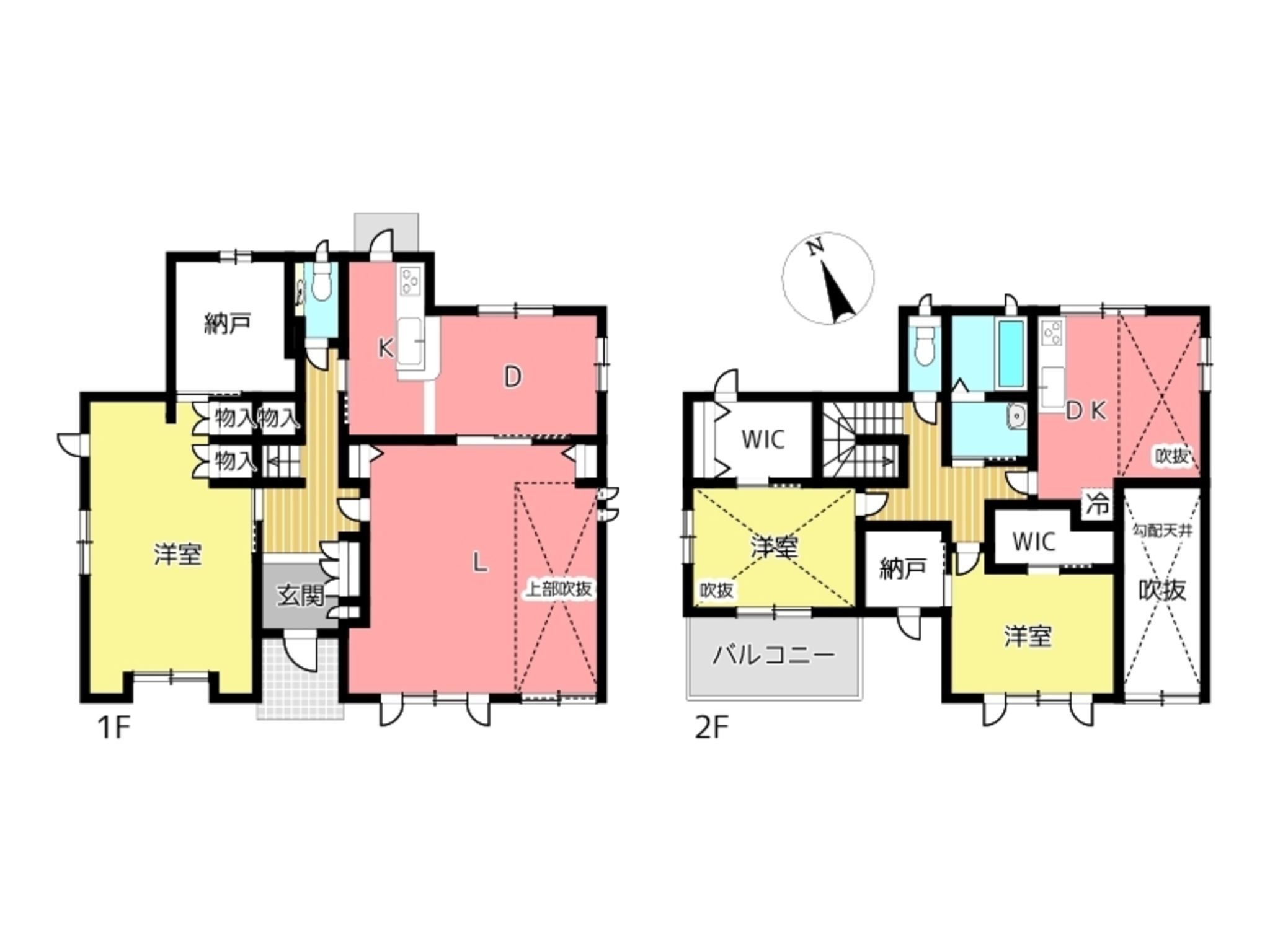設備・条件  カウンターキッチン、ウォークインクローゼット、駐車場3台分、トイレ2箇所、キッチン(1F・2F)